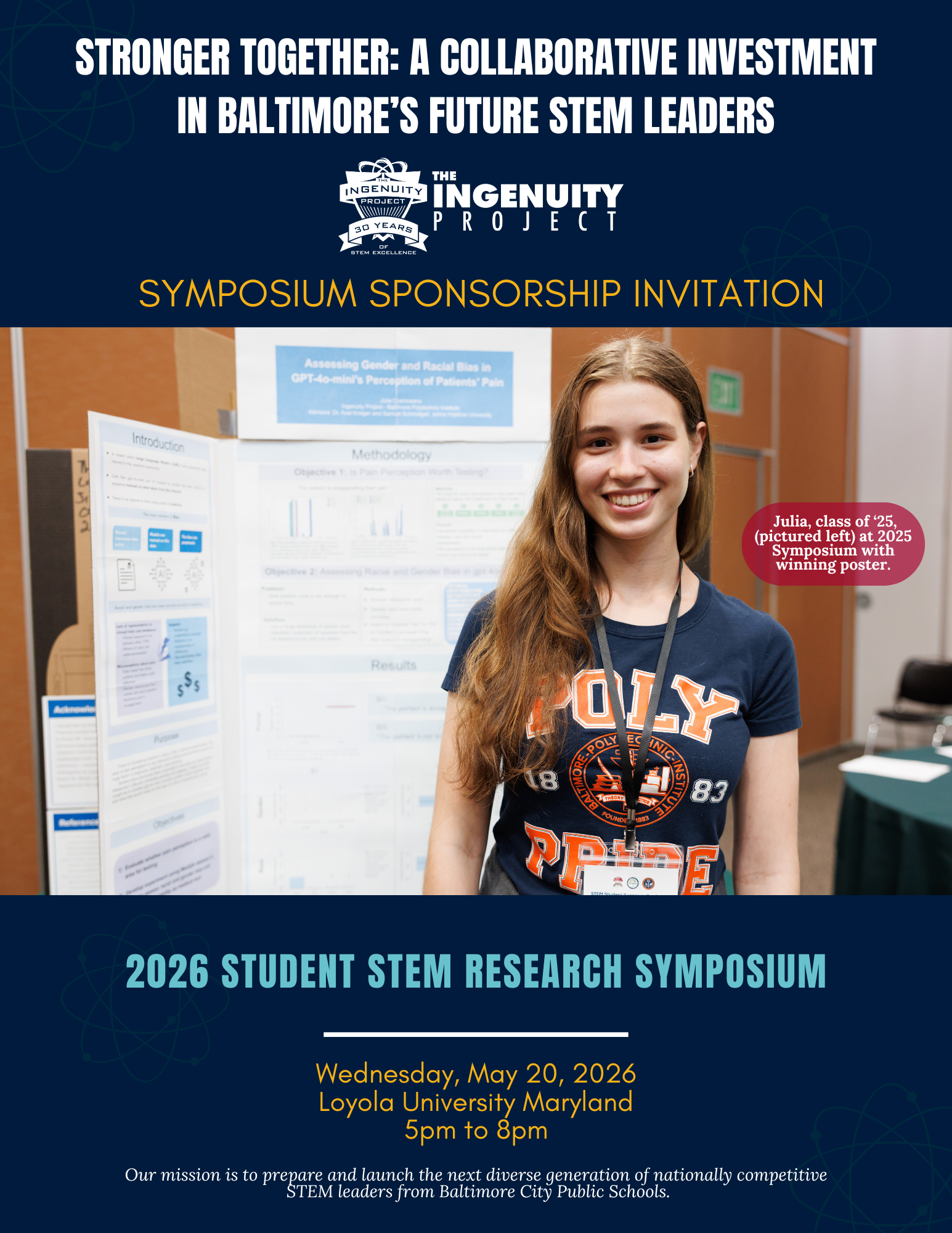 - The annual 2026 Student STEM Research Symposium will be held Wednesday, May 20, 2026, at Loyola University from 4:30 – 8 PM (Sponsorship Packet).